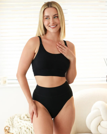 Pensée pour accompagner les mamans après la césarienne, la culotte Béléna offre une taille souple et extensible qui s’adapte sans contrainte à votre ventre en guérison.