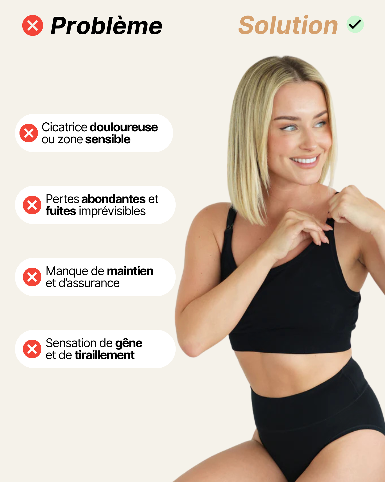Confortable, discrète et respirante, elle vous permet de bouger librement et de retrouver confiance dans votre quotidien de jeune maman.