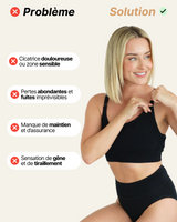 Sa douce compression procure un maintien rassurant tout en évitant les frottements, pour protéger votre cicatrice et apaiser les sensibilités.